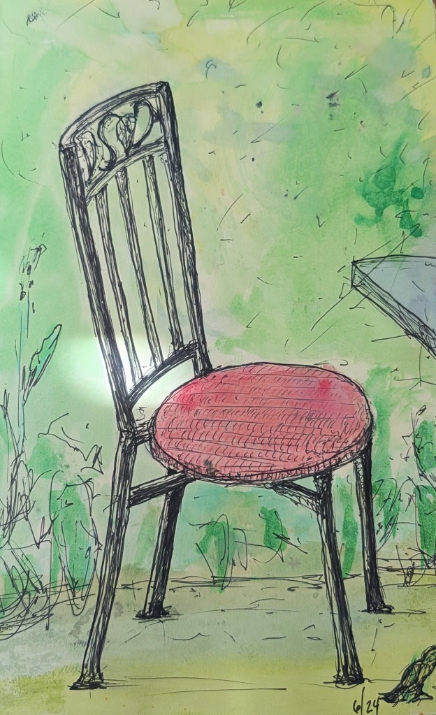 It was 2009, and I was walking through the Chicago Botanic Garden with a group of high school art students. They were ostensibly there to sketch, though a few seemed more focused on texting or perfecting their digital camera angles than studying the leaves. The sun was in its late-afternoon slant, bathing everything in that quiet, golden hush. Then I saw it—a cast iron chair with a red seat so bold it practically declared itself royalty.