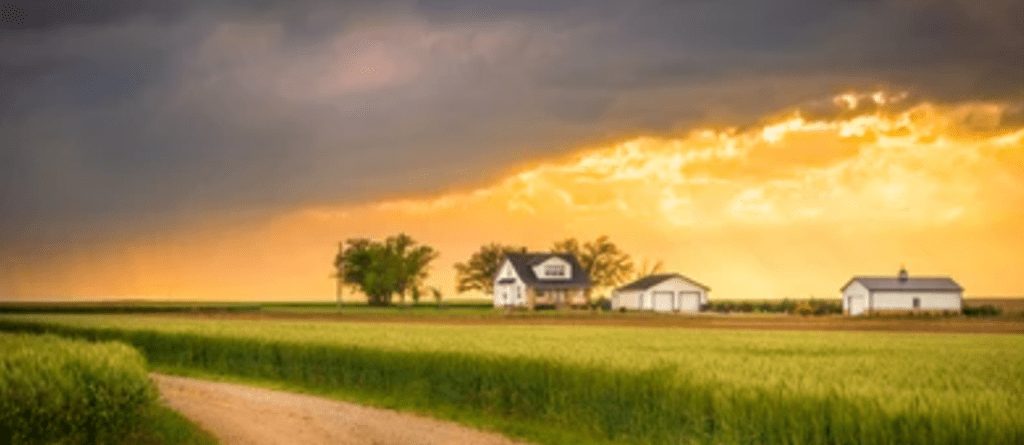 Imagine a white-fenced farmhouse, warm in the golden hour.